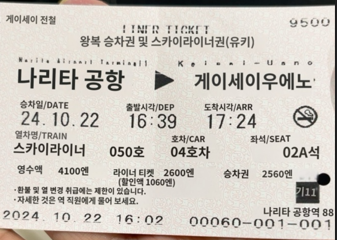 🔹여행객 대부분은 스카이라이너를 구매해서 도쿄시내까지 가는것같아요