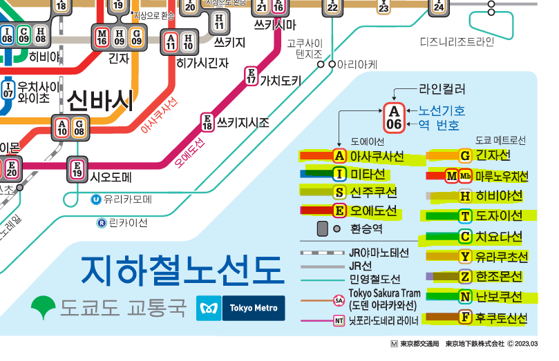 지도중심으로 보면 왠만한 관광지는 대부분 도쿄 지하철패스로 이용가능해요