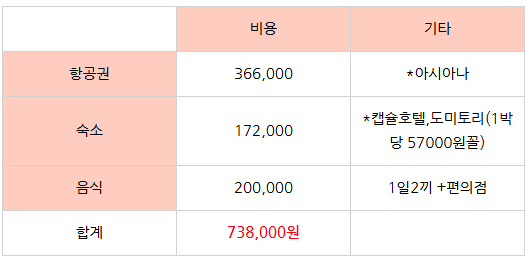 🔹항공권은 아시아나라 저렴한 편이지만 , 시간대가 별로여서 좀 아까울 수도 있다